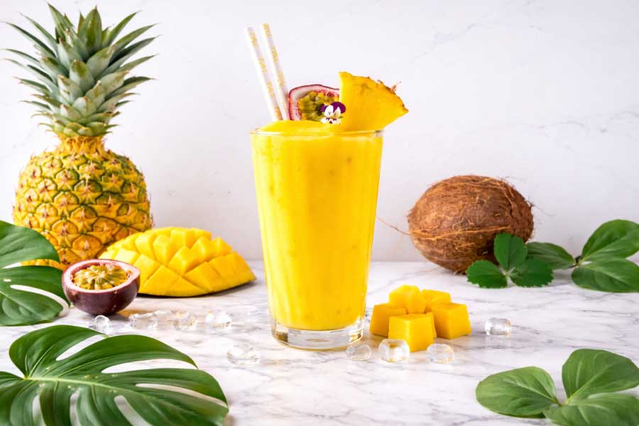 - Som vist på bildene kan du bruke frossen ananas, mango eller en blanding av skogsbær.